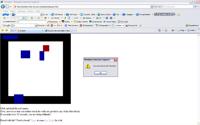 Bon les enfants, c’est bien joli tout ça mais je veux une preuve de votre score moi !! Envoyez moi un imprim écran de votre écran !!! My adress : postmaster@au-pays-des-merveilles.com