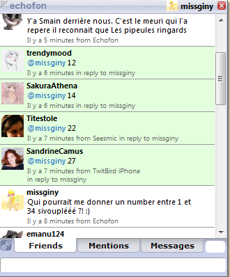 En parlant de Twitter, je ne sais pas si vous avez vu mais beaucoup parlent d’un nouveau jeu : formspring.me. Apparemment ça consiste à poser des questions même en anonyme sur tout et n’importe quoi (surtout n’importe quoi !) histoire d’assouvir la curiosité de certains et accessoirement ne pas bosser pendant ce temps là  ! j’ai quand même créé mon compte (histoire de ne pas paraitre bête et de glander au boulot ) mais manque de bol, je ne peux pas y aller du boulot puisque le site a été bloqué ! ah ah ! Ca rigole pas chez les fonctionnaires hein ?!