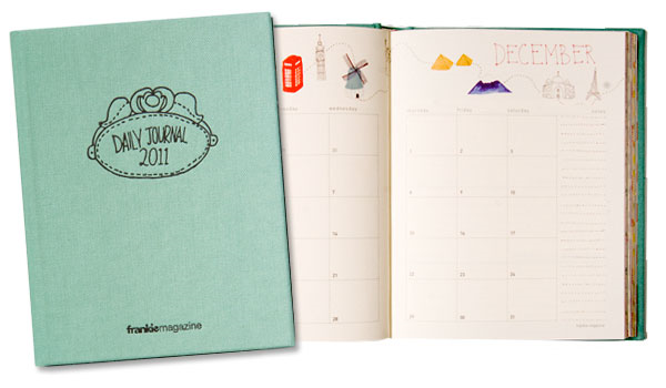 Pour cela, j’ai choisi un très joli journal, dégoté chez Vert Cerise : le Frankie Diary 2011. Je trouvais que cet agenda tout mimi se prêtait bien à la chose et me motiverait plus à y poser ma plume ! D’autant que si le Père Noël m’apporte mon Instax Mini, il sera bien décoré ! (message subliminal !)