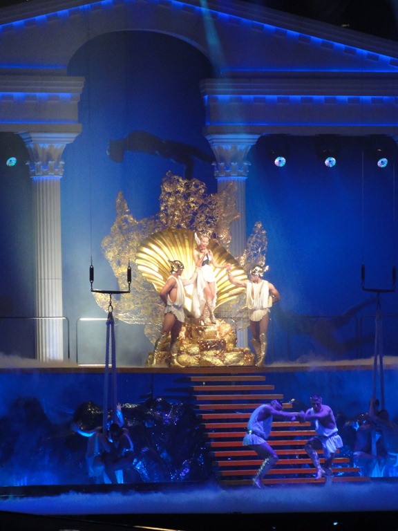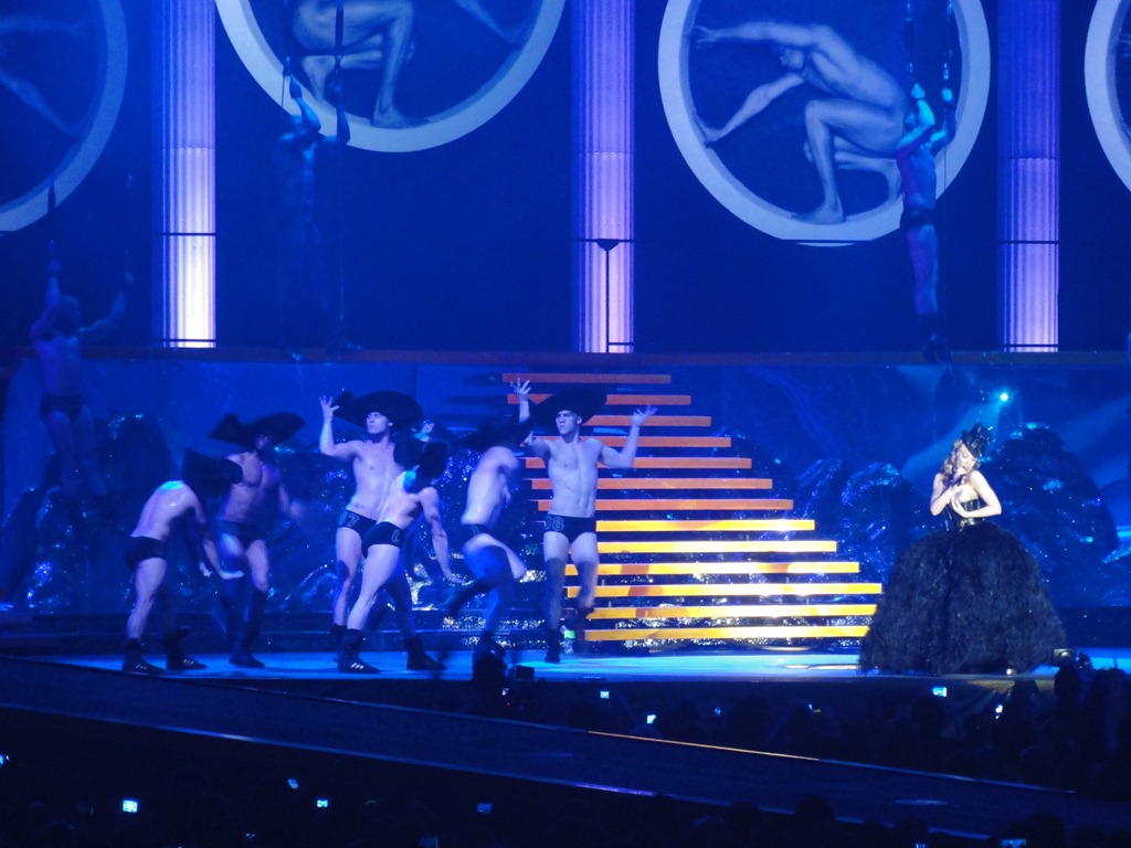 C’était du vrai spectacle. Elle débute sa tournée mondiale “ APHRODITE LES FOLIES TOUR 2011”. Elle enchaine les chansons de son dernier album et quelques reprises sur scène sans temps mort, une vraie performeuse ! Je me suis demandée comment elle avait le temps de se changer et de nous montrer toutes ses belles tenues signées Dolce & Gabbana.